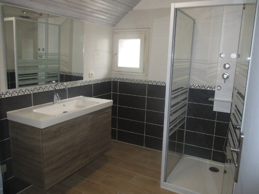 1 salle de bain avec douche ( à l’étage ) / 2 WC séparé ( en haut + au rez de chaussée )